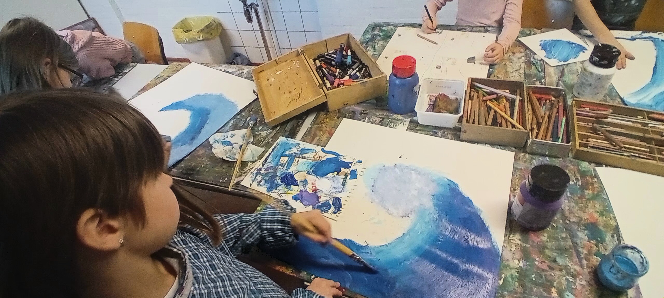De kinderen komen tijdens de cursus in aanraking met verschillende materialen: (kleur)potlood, ecoline, olie- en softpastelkrijt en acrylverf. Zo kunnen ze ervaren hoe het werkt, wat hun voorkeur heeft en welk materiaal het fijnste is om je mee te uiten. Verder worden er verschillende thema’s aangereikt die komen uit de belevingswereld van het kind, zodat ze zich betrokken voelen bij wat ze doen. Dit kan zijn over gevoelens, wensen, dromen en soms gaat dit in de stijl van een kunstenaar. Steeds is er ruimte voor een klein gesprekje hierover.